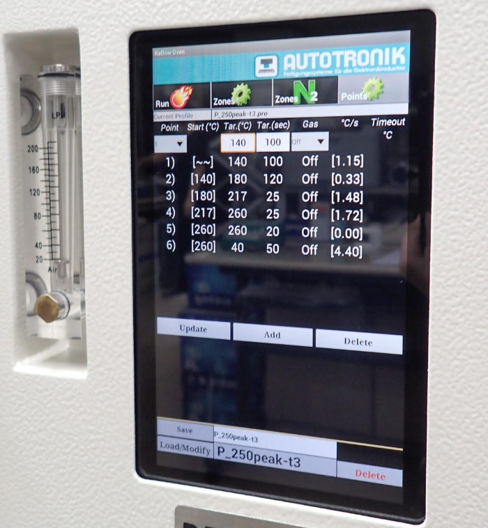 301N reflow Oven은 기술지원 능력이 매우 빠르고 다양한 고객의 맞춤형태의 장비 환경 사용이 가능하다. 2가지 운영모드로 기본 제공되며, 하나의 운영모드는 JEDEC 환경에서 누구나 쉽게 구간별 온도. 시간 설정할 수 있으며 2번째 운영 모드는 Points to Point 방식으로 Zone 구간을 100구간 까지 설정을 하여 사용할 수 있다. 기본 full Automatic N2 환경. Flux 필터 시스템이 구성되어 있다.
