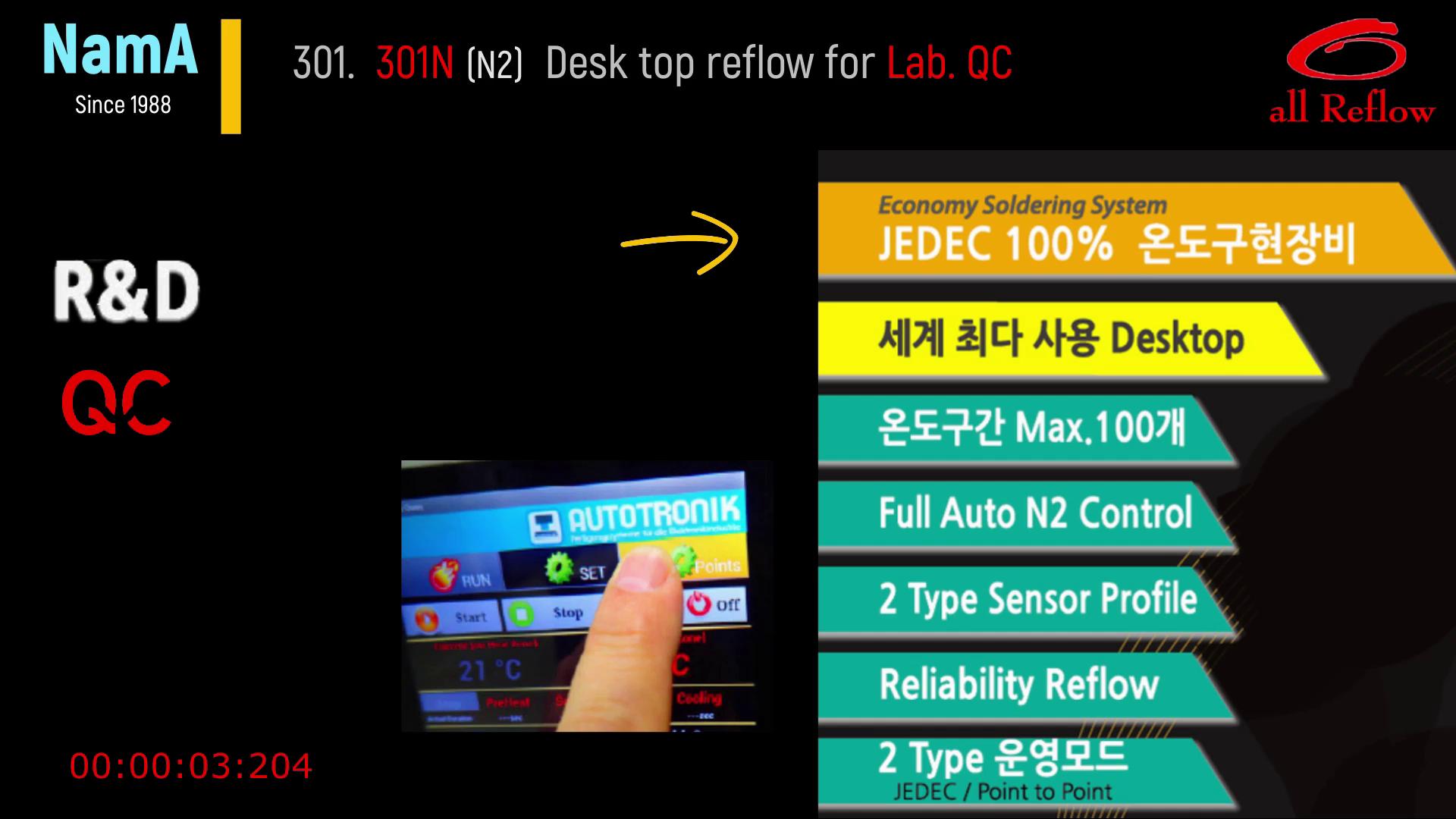 본 장비는 Autotrononik-SMT GmbH 회사의 제품으로 남아전자산업에서 1991년 부터 30년 이상 한국 및 아시아 판매를 하고 있습니다. Small batch Reflow N2 제품중에 가장 기능성이 뛰어난 장비 입니다.