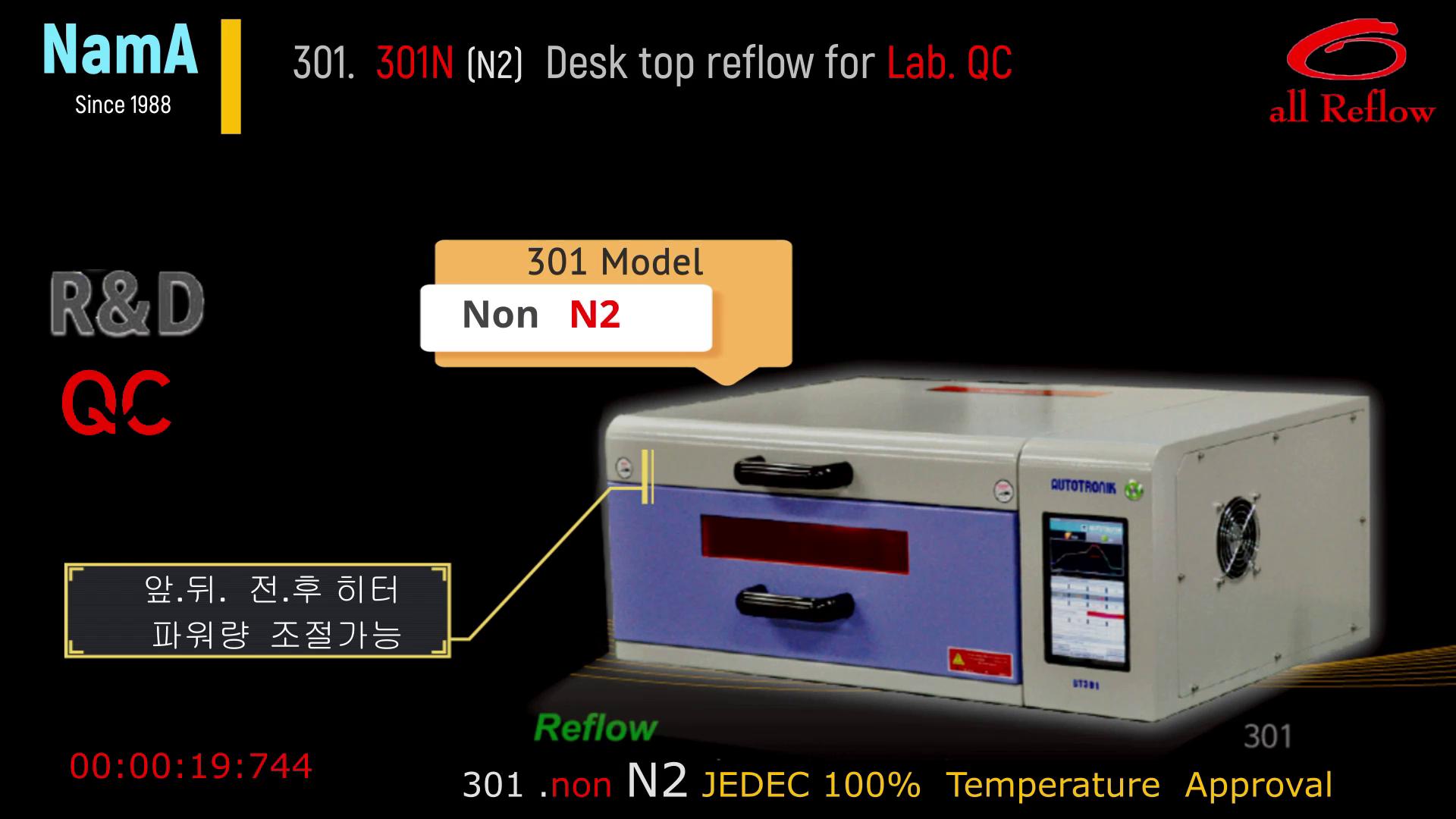 질소 소형 리플로우 301N . 특징 및 주요 기능
