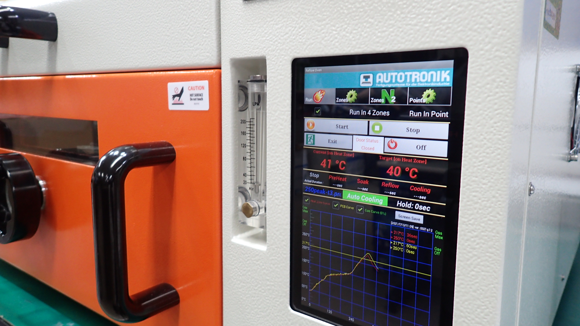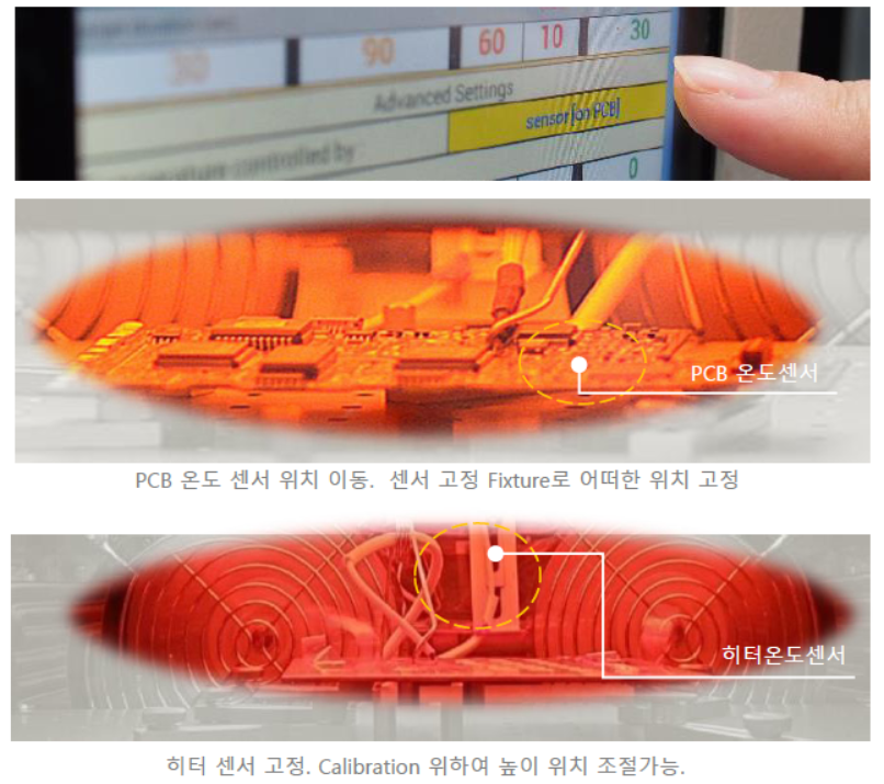 Computer Main Board 와 같은 PCB 온도 분포 조건을 달리 필요할 때도 Chamber 전.후 / 좌.우 Heater Power량을 개별 할 수 있는 기능 있어 어떠한 소재의 PCB reflow Soldering 작업을 할 수 있는 장비입니다.